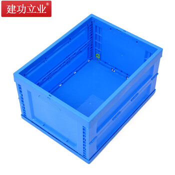 建功立业 折叠周转箱 不带盖 外径530*410*300mm 车间工业五金搬运箱塑料箱 212008蓝色