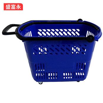 盛富永 超市卖场购物篮拉杆塑料手提篮手拉篮 买菜购物筐超市购物车 塑料沥水篮子 35L蓝色四轮