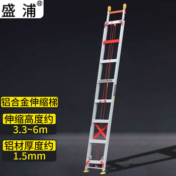 盛浦 伸缩直梯子 铝合金工程梯拉绳升降 加固耐用防滑6米 S-TS060