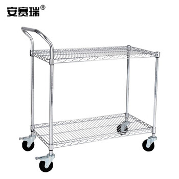 安赛瑞 手推车 镀铬线网可移动搬运工具车 电商物流车间物料周转车分拣货车90×45×103cm 两层 200387
