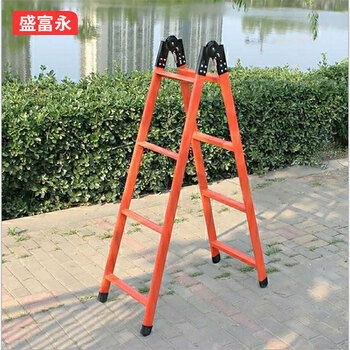 盛富永 人字梯 加厚碳钢折叠梯工程踏步烤漆梯子【大红2.5米】承重150kg