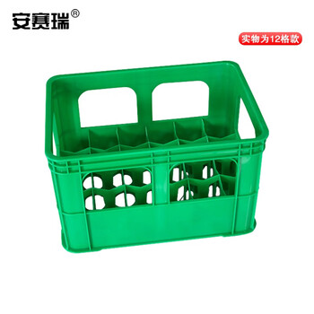 安赛瑞 啤酒筐 12分格周转箱 塑料杯筐汽水收纳筐 玻璃瓶通用型啤酒箱 外350×265×320mm 绿色 高款 200274