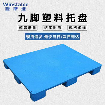 伏兴 平板九脚托盘 塑料托盘叉车卡板铲板定制仓库防潮栈板物流拖板周转垫板 加厚100*80*14cm 加3钢