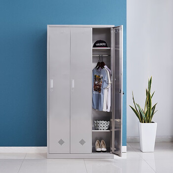 欧思泰不锈钢三门储物柜铁皮柜多门挂衣柜收纳柜办公柜杂物柜员工柜多门柜寄存包柜201