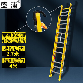 齐鲁安然 绝缘伸缩梯 绝缘梯 鱼竿梯 玻璃钢电力电工施工梯 竹节梯 2米4米梯子 人字梯【4米 伸缩直梯】