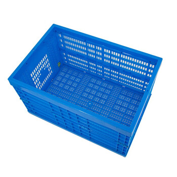 冰禹 BY-3038 塑料折叠周转筐 蓝色加厚塑胶可带盖塑料筐 600*400*340mm(无盖)
