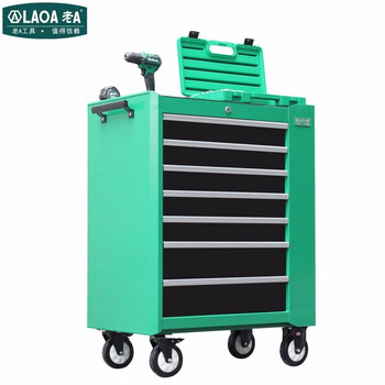 老A LAOA LA119007工具柜存储柜收纳柜移动工位柜维修工具车重型七层抽屉侧门带挂板工具柜绿色-量大可定制