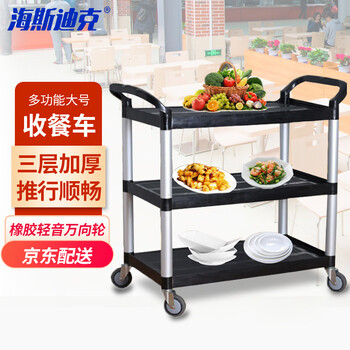 海斯迪克 HK-727 三层塑料小推车 加厚大号塑料餐车 收碗碟车送餐车上菜车 黑色