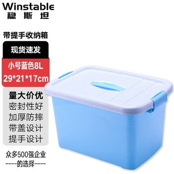 稳斯坦 W305 彩色带提手收纳箱 周转箱 带滑轮储物箱杂物工具带盖整理箱 蓝色8L