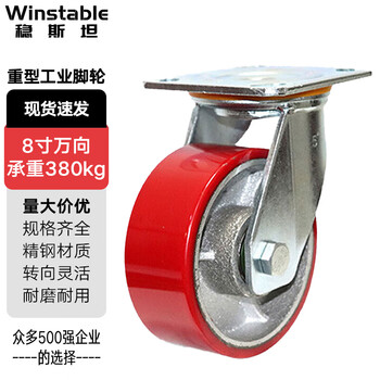 稳斯坦 重型工业脚轮 铁芯聚氨酯PU工业轮子 8寸万向-承重380kg 1只 WST160