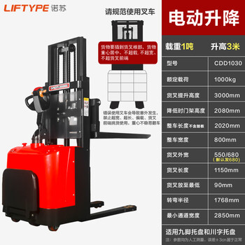 诺苏(LIFTYPE)叉车站驾式全电动液压堆高车电动托盘堆垛车升降叉车站驾式1吨升高3米