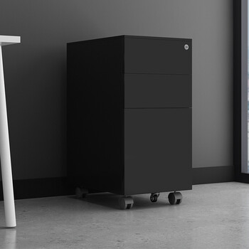 欧思泰活动柜文件柜三抽屉办公桌下矮柜移动收纳 300宽黑色侧拉