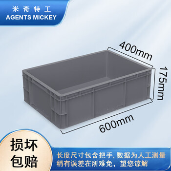 米奇特工(Agents mickey)灰色加厚EU箱 塑料物流箱 欧标汽配周转箱 收纳整理储物箱 600*400*175灰色