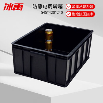 冰禹 BY-3036 黑色防静电周转箱塑料收纳箱 电子元件盒 物料盒零件盒 545*420*240无盖