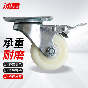 冰禹 BYlj-297 脚轮推车轮子万向轮 加厚脚轮白色尼龙轮 工业脚轮 3寸轻型万向刹车轮