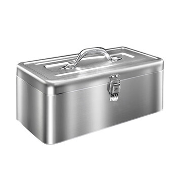 盛富永 五金工具箱 不锈钢铁皮工具箱 中号电工维修箱 加厚多功能手提式车载收纳箱 430不锈钢双层