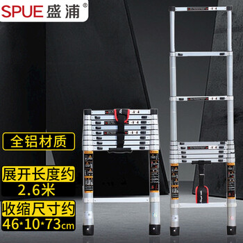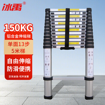 冰禹 BY-5061 梯子 铝合金梯子 竹节梯伸缩梯子加厚工程梯子伸缩梯 13步单面梯5米