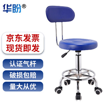 华盼 实验室工作台配套圆凳子可旋转升降椅 蓝色滑轮款带靠背370*370*280mm HP-353实验凳一把