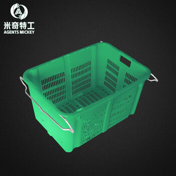 米奇特工(Agents mickey)加厚塑料周转筐 长方形收纳箩胶筐子 23#周转箩(绿色) 682*480*375mm 带铁耳