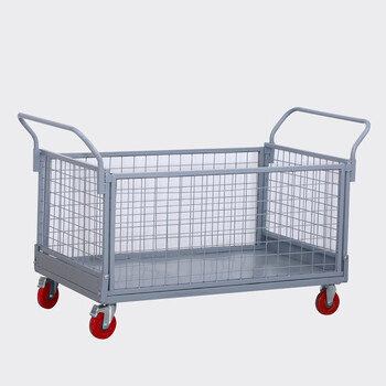 万尊 全钢平板推车仓储物流物料车万向轮可折叠围栏承重300kg