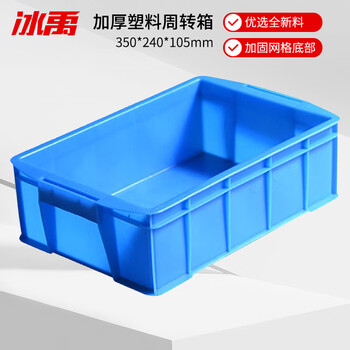 冰禹 BY-1187 塑料周转箱 蓝色加厚 可带盖整理箱 零件盒 物流箱 315箱 外尺寸350*240*105mm