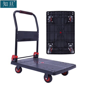 知旦手推车58*88*86cm承重600斤黑色升级款平板推车物流运货车塑料板车TC701 5寸轻音轮
