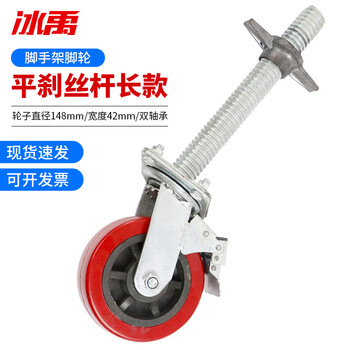 冰禹 BY-2458 脚手架平刹丝杆脚轮丝杆脚手架脚轮 黑芯刹脚手架脚轮 平刹丝杆长款