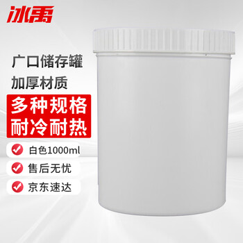 冰禹 BYlj-237 塑料瓶加厚广口储存罐 大口直立桶 存储密封桶密封罐 1000ML白色