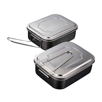 元汗698 304不锈钢饭盒19*14.5*6cm 1个 长方形带盖便当盒学生食堂分隔快餐盒 定制