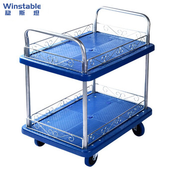 稳斯坦 WST895 双层手推车平板车 小推车工具车拣货车 59X90两层带护栏