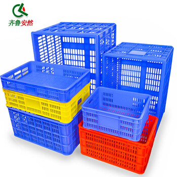 齐鲁安然 塑料周转筐 塑料筐 周转箱 货物搬运堆放 快递物流箱 杂物收纳【蓝色 4号周转筐】625*415*180mm