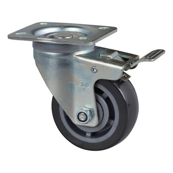 安赛瑞 平顶刹车脚轮 4英寸中型PU低噪音轮 承重200KG滑滚轮 铁双刹易得力定制 16232