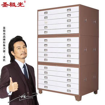 圣极光图纸柜办公室底图柜带轮抽屉柜咖白色1号三层可定制G1653