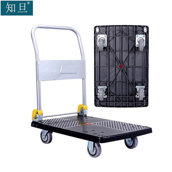 知旦手推车58*88*86cm承重600斤黑色轻音款四轮拖车塑料手推车快递小板车TC699 5寸轻音轮