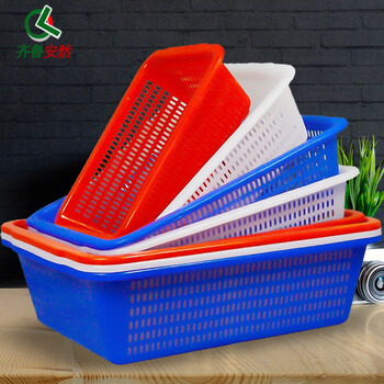 齐鲁安然 方筛 塑料筐 洗菜篮 周转筐 整理筐 带孔箱 摆摊 地摊 路边摊 红色【6号洗菜筐】 456*360*137mm