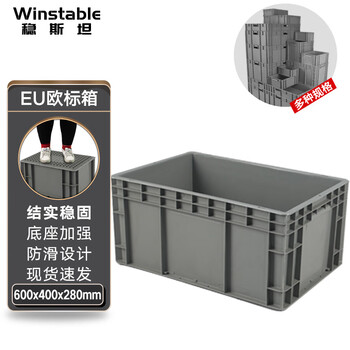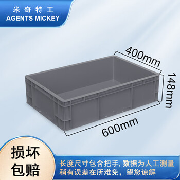 米奇特工(Agents mickey)灰色加厚EU箱 塑料物流箱 欧标汽配周转箱 收纳整理储物箱 600*400*148灰色