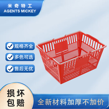 米奇特工 超市购物篮手提篮塑料筐大号零食超市便利店购物篮 3号超市篮-红色
