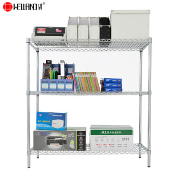 川井(WELLAND)网层货架 三层线网镀铬置物架工业级电镀线棒收纳储物架 单层承重250kg 150*35*120cm