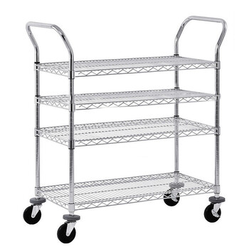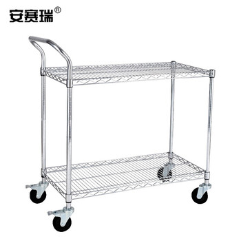 安赛瑞 手推车 镀铬线网可移动搬运工具车 电商物流车间物料周转车分拣货车120×45×103cm 两层 200389