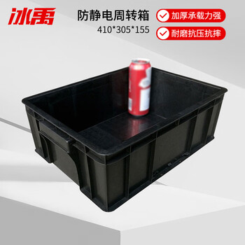 冰禹 BY-3036 黑色防静电周转箱塑料收纳箱 电子元件盒 物料盒零件盒 410*305*155无盖