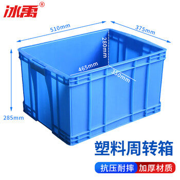 冰禹 BY-1188 蓝色加厚塑料周转箱 可带盖零件盒物流箱 510*375*285mm