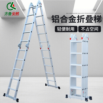齐鲁安然 伸缩梯子 多功能加厚 铝合金折叠梯 人字梯 工程楼梯 厚款4折5步5.7米 (2.0mm)