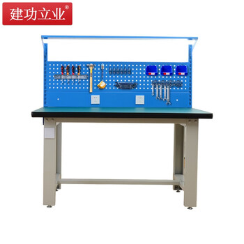 建功立业 重型工作台 钳工台1500*750*800+620mm五金维修台装配台实验桌 211570带挂板灯板