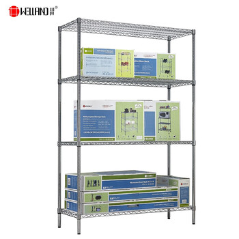 川井(WELLAND)四层储物架 展示架 收纳架 货架 仓储置物架 工业线网货架 落地收纳架 25mm管径60*45*150cm