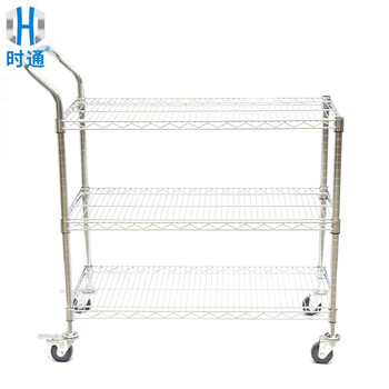时通货架手推车/3层 承载200kg/层 工厂车间超市车库仓储用 周转车移动工具车 907*457*1040三层单扶手3寸轮