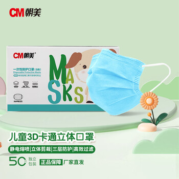 CM朝美【50只】单独包装一次性防尘防飞沫唾液细菌病毒口罩粉尘安全防护儿童口罩蓝色