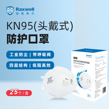 Raxwell KN95口罩工业防尘防霾 舒适针织耳带 呼吸阀 头戴式25只RX9502V