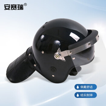 安赛瑞 面罩式防暴头盔 安保巡逻执勤反恐 防砸防刺战术钢盔 带面罩 黑色 10065