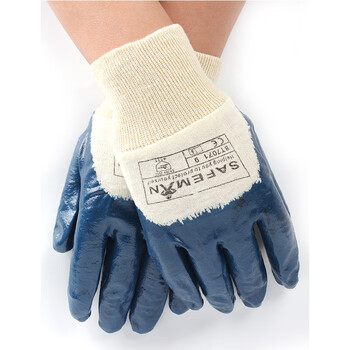 君御 BT7071-9半浸蓝色丁晴手套长24cm衬里全棉针织绒布劳保手套*12副(7-30天货期)