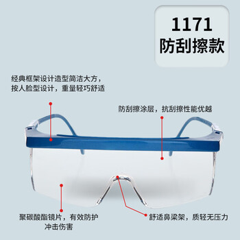 3M 护目镜工业切割防飞溅骑行防护眼镜防粉尘防刮擦防冲击 1711 1副装
